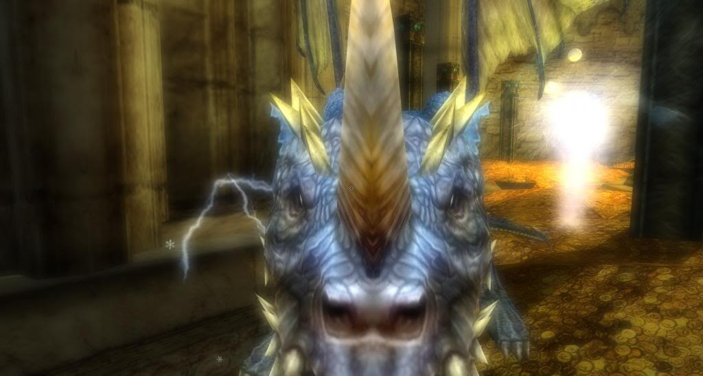 We also ran eE Gianthold Tor Sunday night. That was myself, 2 guildies and Samius, Torrance & Faeylinn from the Defense Guild. That first fight caused a few issues, some deaths and a rethink of tactics. Once we were sorted, we came out, rebuffed & restarted. A much smoother run the second time in. We just had time to try one of the dragons so ran the black. Wow, those guys hit hard on eE! My fighter got wing buffeted on to a ledge above the door, though, and he has an artificer level. So I stayed put and ranged the buggers π