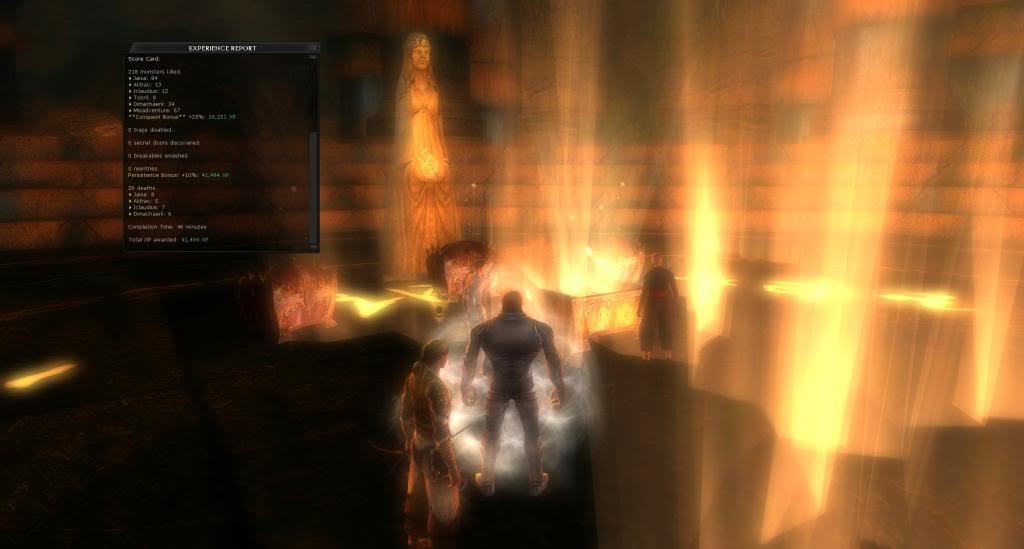 So, regarding the stuff above. I would like to point out that I do not consider myself a power gamer, or a min/max player. I’m not trying to boast, or show off. I enjoy DDO for the stories and the challenges. I’ve purposefully avoided details on the new raid for that reason – I wanted to see what we could figure out for ourselves. What I would say is that playing together, as a team, is what makes DDO a lot of fun for me. Running eE’s is something we rarely did before teaming up with the Defense Guild, mainly because we would not be able to put together a full party from our guild alone. But a good team, tactics, that’s everything. And trust in the people you run with π And I’m fairly sure I’ve not said that right, so I hope you understand what I’m trying to get across π