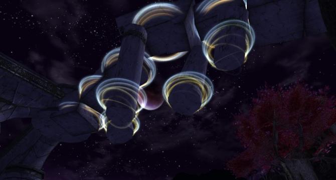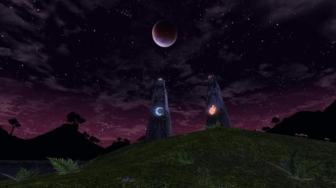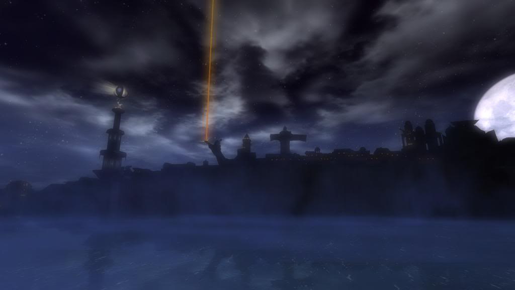 A night shot of the shrines in the Vale of Twilight