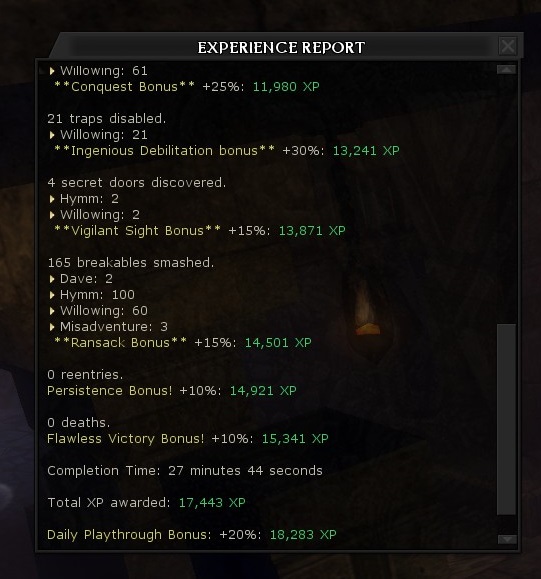 Hymm capped life 30 a few weeks ago now. Obviously Rach capped her main, Willowing, too – but I’ve no idea what life she is on. (I’m fairly sure she doesn’t know either Ā š ). I know in my last blog (oh so long ago) I said I intended to do 15 Wizard/5 Warlock but when I actually started the build process and looking at the spells I would lose – I changed my mind. So I went with a pure Deep Gnome Wizard with focus in Illusion, with Necomancy second. I had a fine old time running around and PK’ing and FoD’ing stuff Ā š